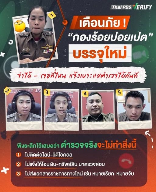 ดูกันให้ชัด ๆ นี่คือโฉมหน้า “กองร้อยปอยเปต” ล่าสุด !! ถูกบรรจุเพิ่มจากเบาะแสของประชาชนมายังเพจ Thai PBS Verify เตือนประชาชนให้จดจำหน้าเอาไว้ ป้องกันการตกเป็นเหยื่อ เจอที่ไหนแจ้งจับได้ทันที !