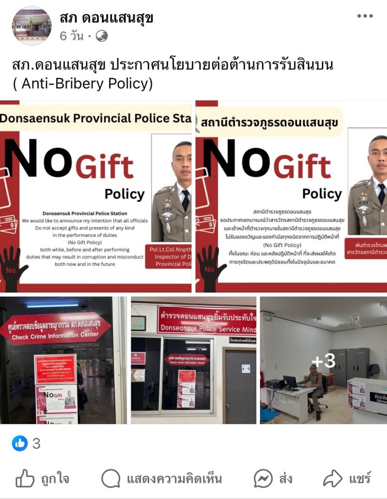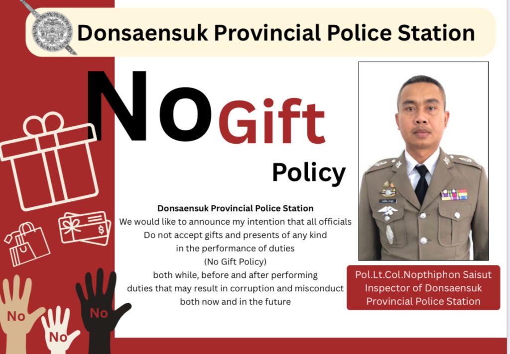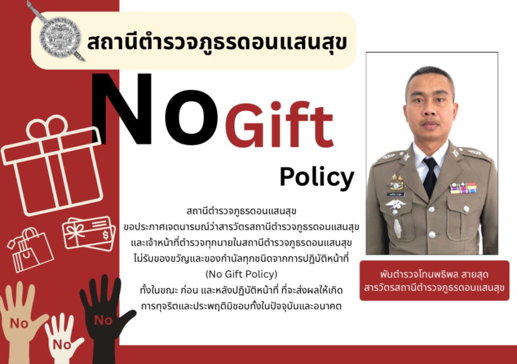 ประกาศเจตนารมณ์ที่จะไม่รับของขวัญและของกำนัลทุกชนิดจากการปฏิบัติหน้าที่ (No Gift Policy)
